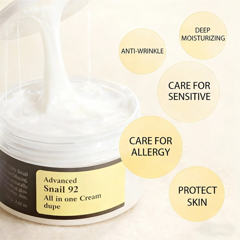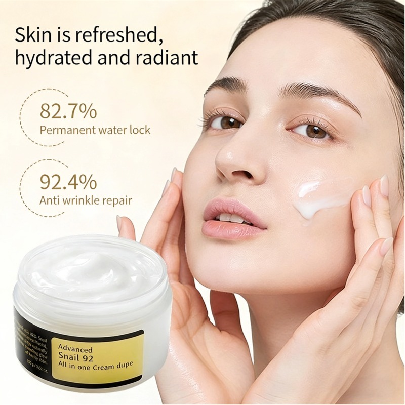 La crema todo en uno Aisen Snail 92 se centra en la mucina de caracol de alta concentración, combinada sinérgicamente con ácido hialurónico para una hidratación profunda. No solo proporciona una hidratación duradera del 82,7 % y una eficacia reparadora antiarrugas del 92,4 %, sino que también cuida con delicadeza la piel sensible y propensa a la irritación. Mejora notablemente la sequedad, las líneas de expresión y el enrojecimiento, crea una barrera protectora natural para la piel y deja la piel seca hidratada, elástica y suave.