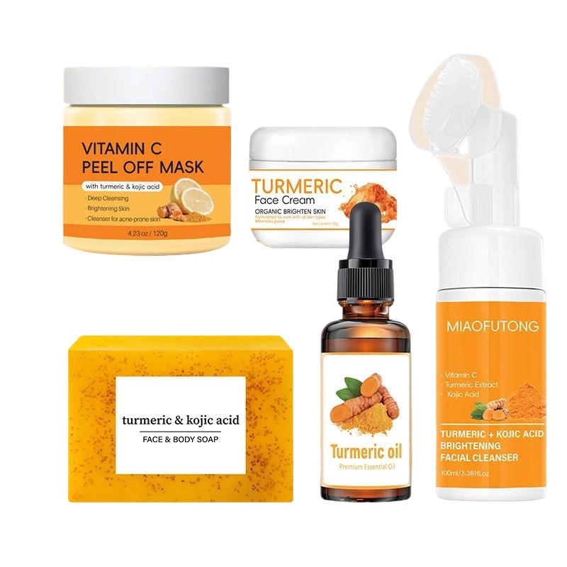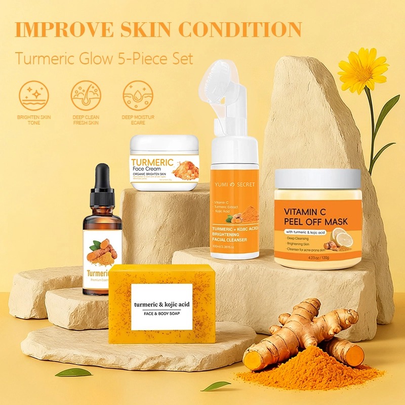 Este set de 5 piezas de cúrcuma combate las cicatrices del acné, las manchas oscuras, la opacidad y los poros dilatados, ofreciendo una rutina diaria completa para una mejora visible de la piel.