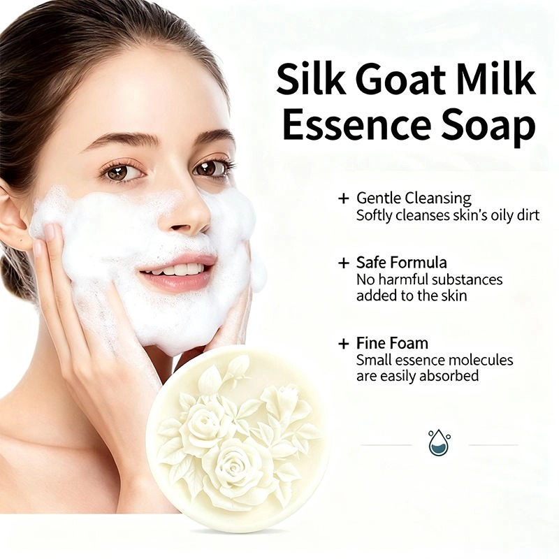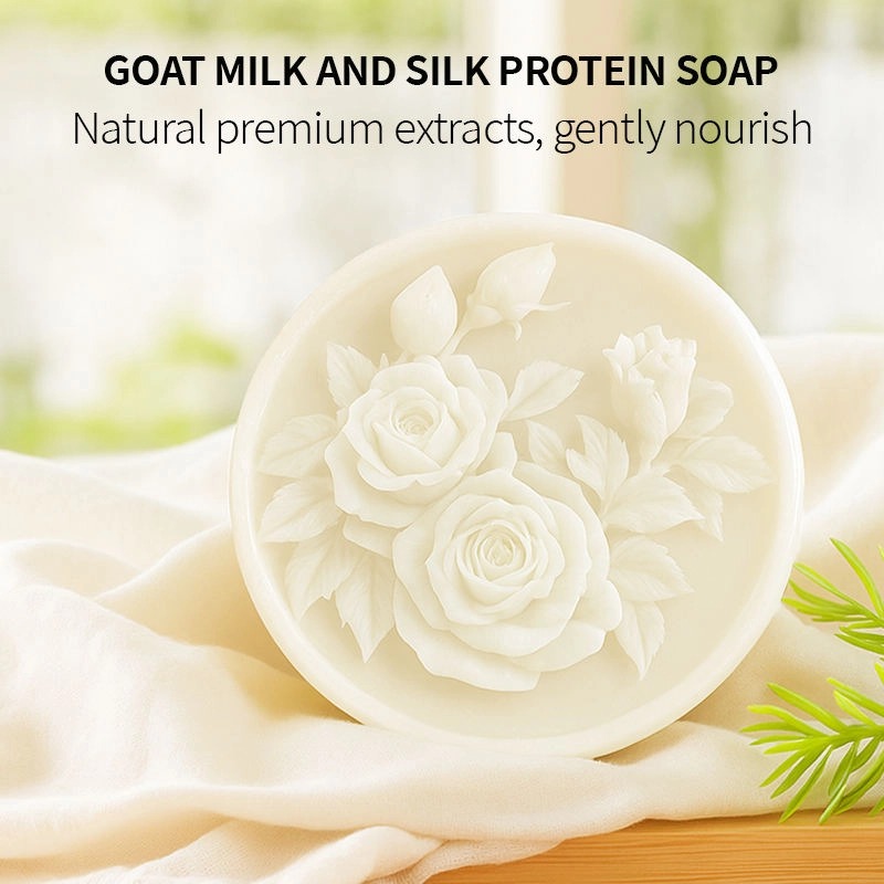Nuestro jabón de leche de cabra y proteína de seda es un producto integral para el cuidado de la piel. Enriquecido con leche de cabra y proteína de seda, limpia en profundidad, ilumina, hidrata y combate el acné. Suave para todo tipo de piel, es apto para rostro y cuerpo, y cuenta con un elegante diseño de rosa en 3D.